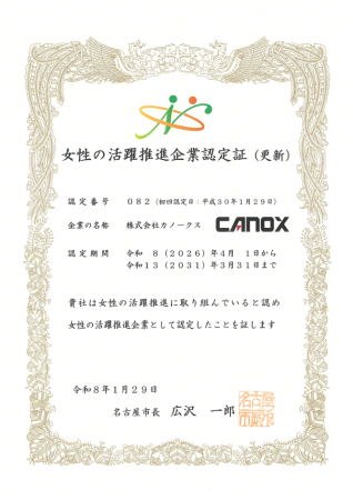 このたび、「名古屋市女性の活躍推進企業」の認定が更新されました。