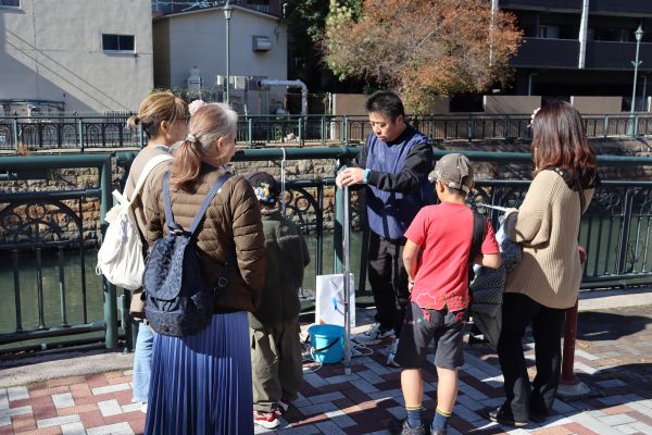 当日は25名(うち小学生13名)が参加。特別ゲストとして名古屋おもてなし武将隊の「徳川家康」が乗船し、堀川ガイドや歴史クイズで参加者を楽しませました。納屋橋では、子供たちに大人気の堀川のイメージキャラクター「ホリゴン」がお出迎えし、広場では堀川の歴史や自然環境を学ぶ勉強会、水質調査体験、ホリゴンとの記念撮影も行われました。